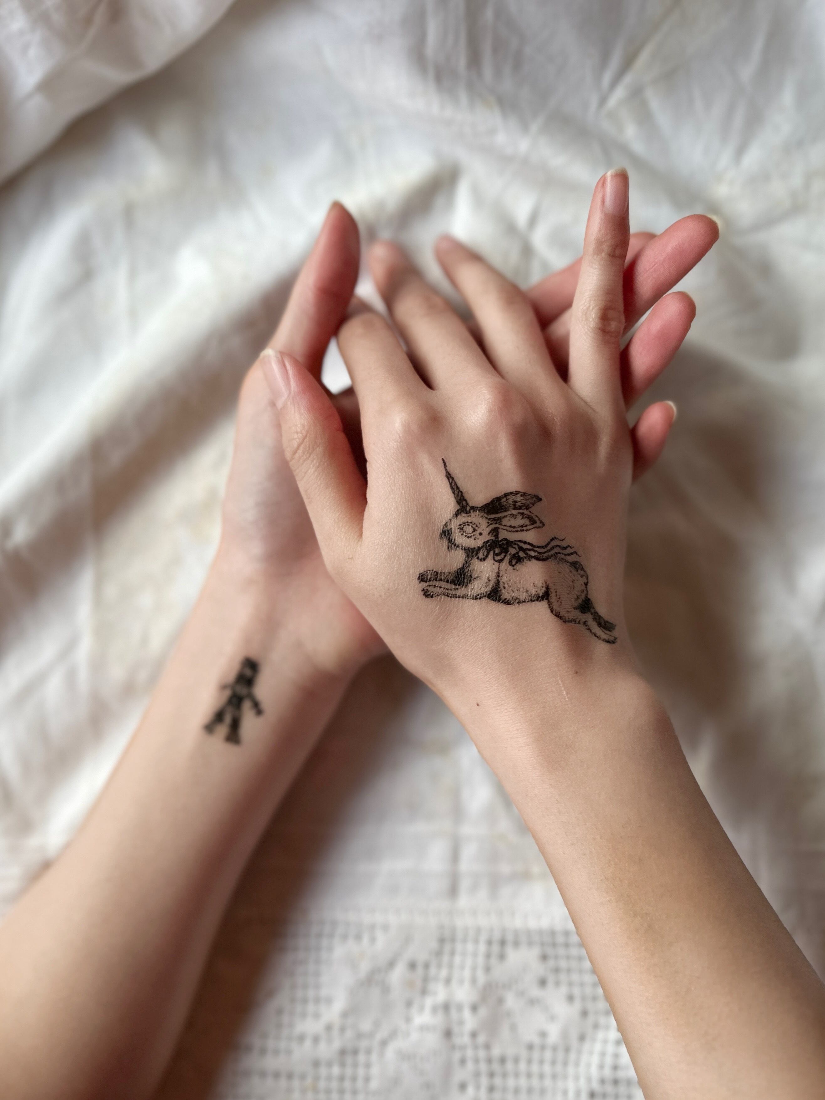水で貼るタイプのボディステッカー(タトゥーシール)です。身体や陶器、お好きなところにお貼りいただけます。